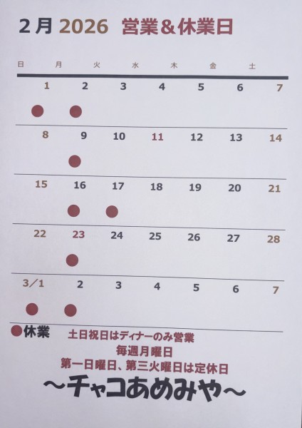 > 2月の営業&休業日…